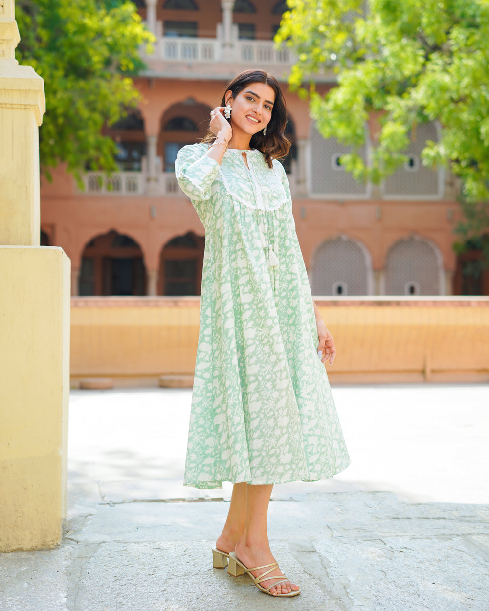 Handblock Printed Turquoise Dress