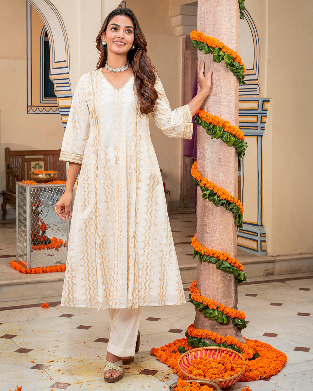 Ivory Banarasi & Chanderi Kurta Set