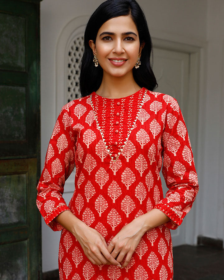 Red Pine Kurta Set