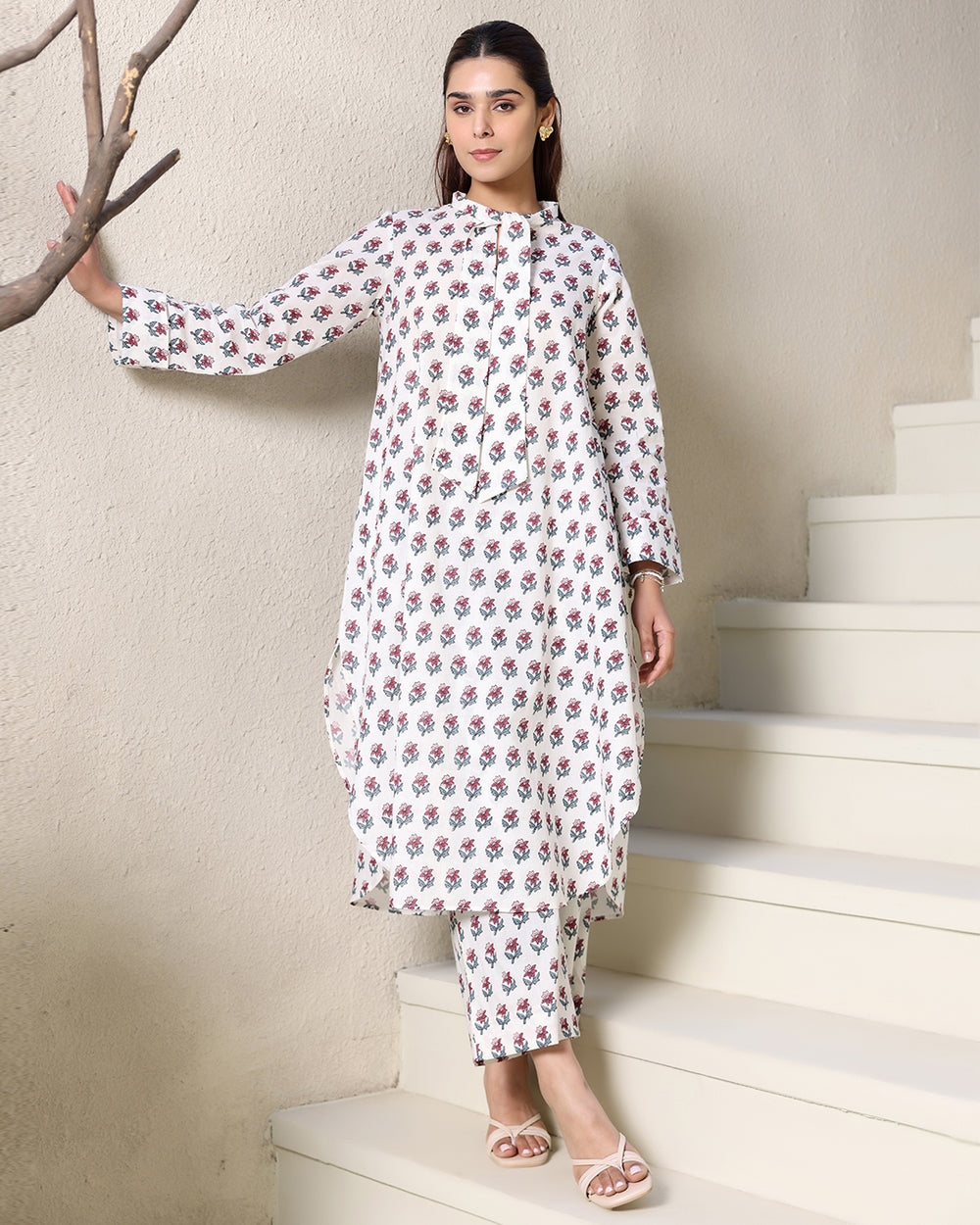 WHITE TIE-UP PRINTED KURTA SET