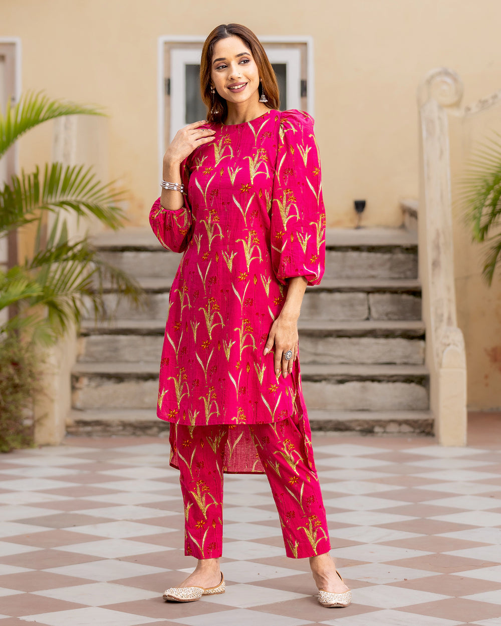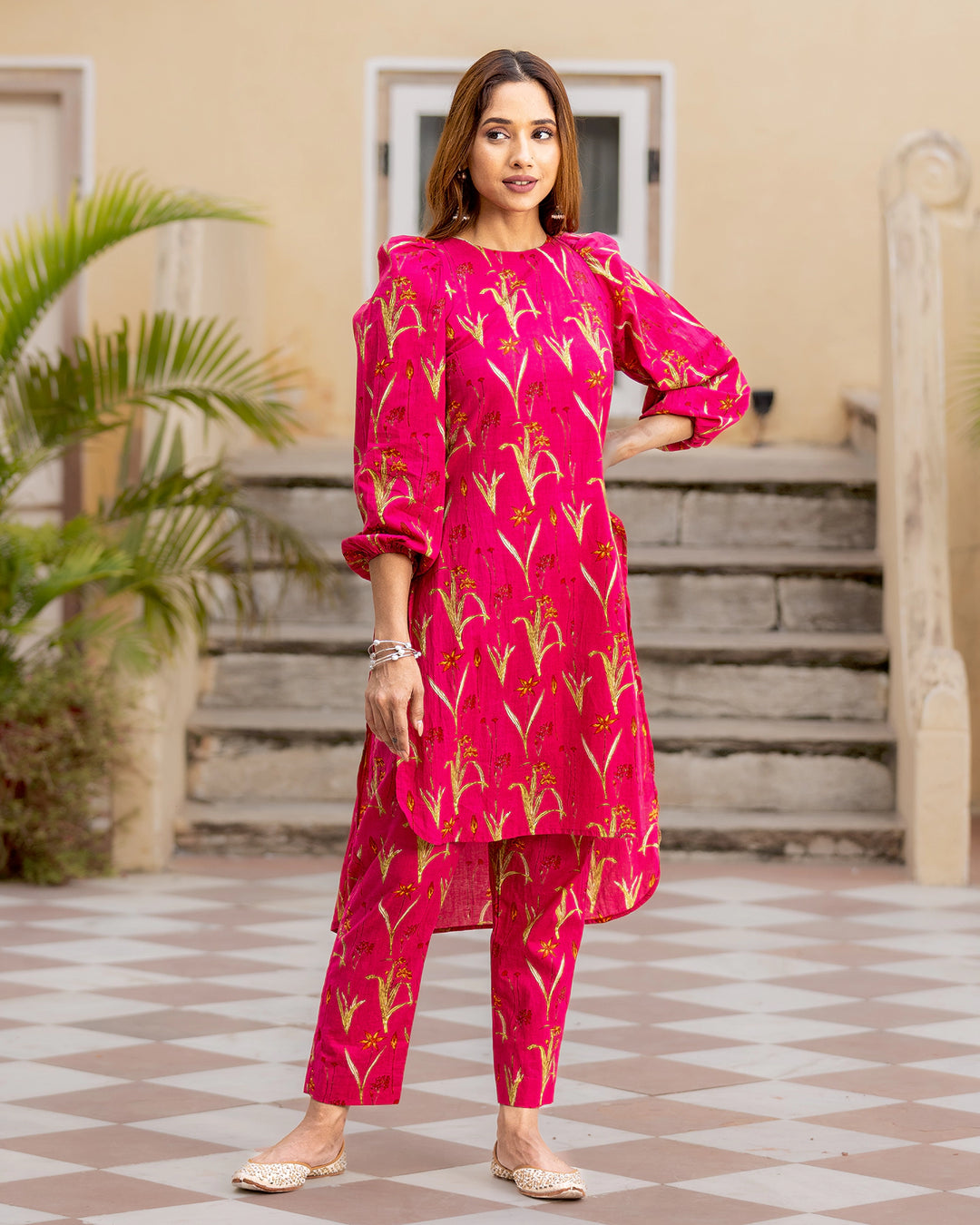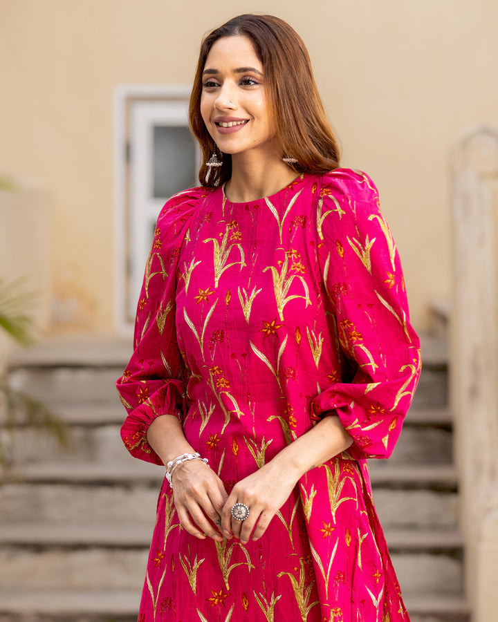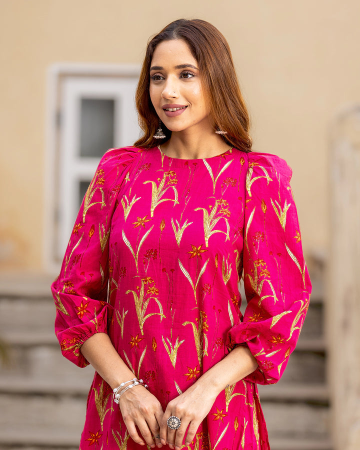 Fuschia Pink Floral Kurta Set
