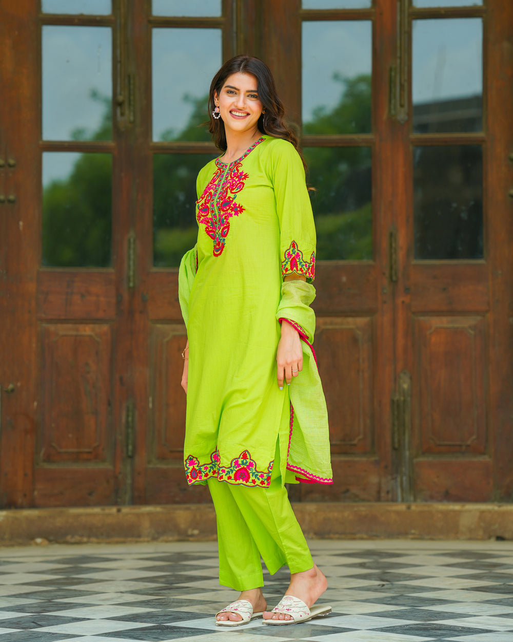 Neon Green Cotton Aari Suit Set