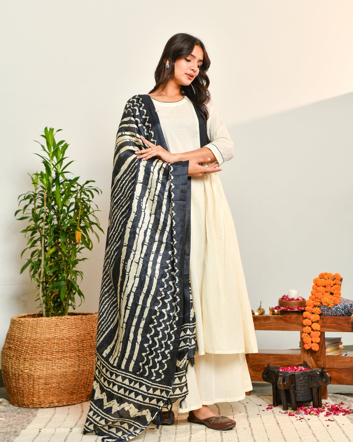 Ivory Black Ikat Dupatta Suit
